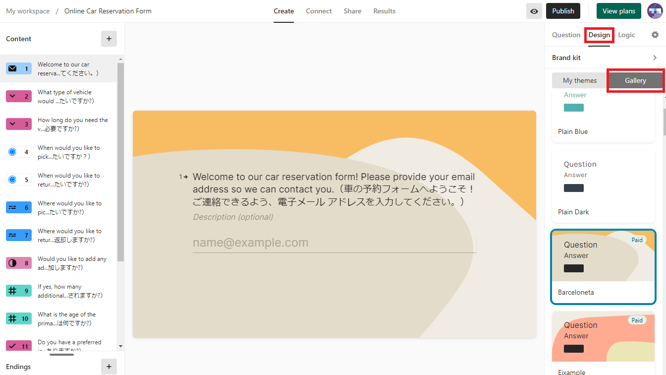 先程作成したオンラインのレンタカー予約フォームをカスタマイズします。
