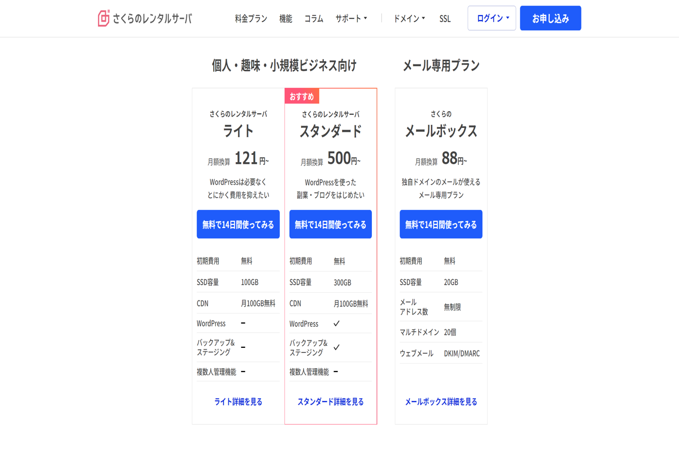 レンタルサーバーは、エックスサーバーやさくらのレンタルサーバーなどのサービスが人気です。月額100円~1,000程度で利用できます。初めてで不安な方は、無料お試し期間のあるサービスを選ぶと良いでしょう。