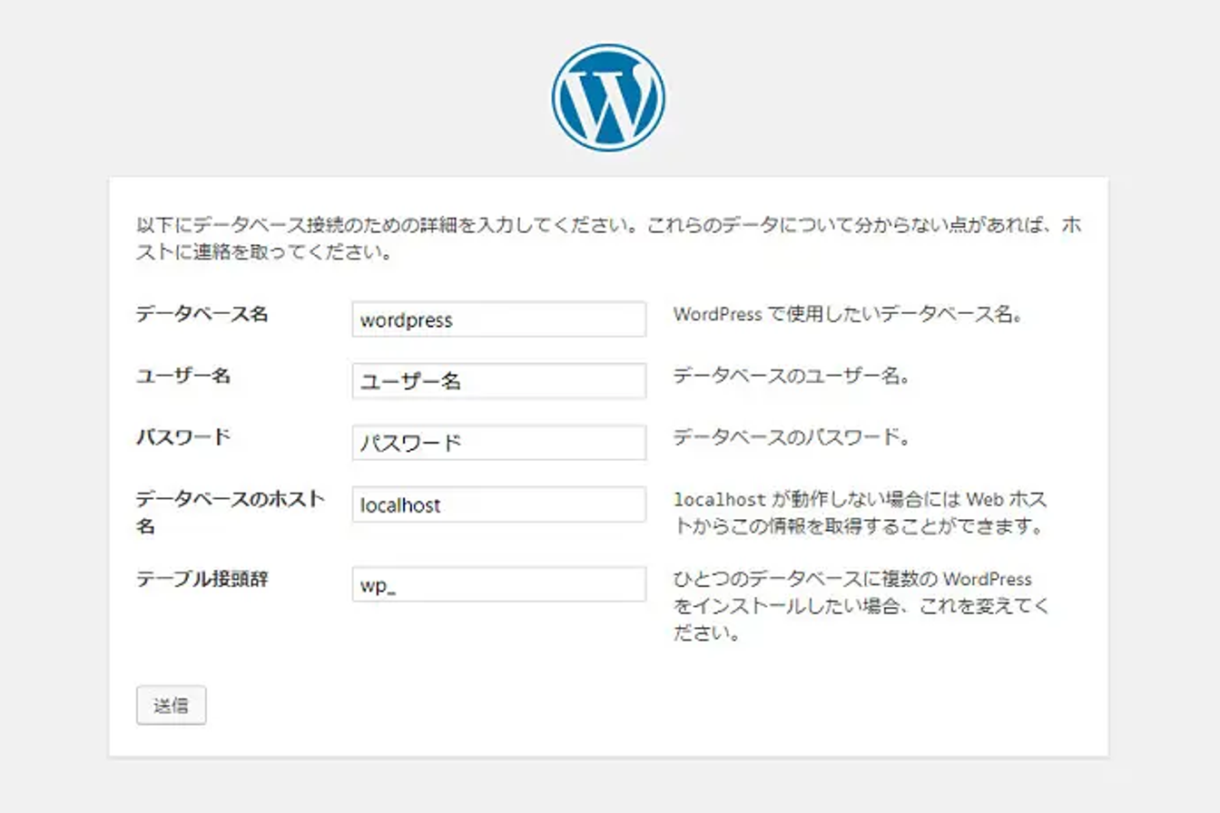 すると、WordPressのインストール画面が表示されるので、必要事項を入力していきます。入力が完了すれば、無事WordPressがインストールされます。