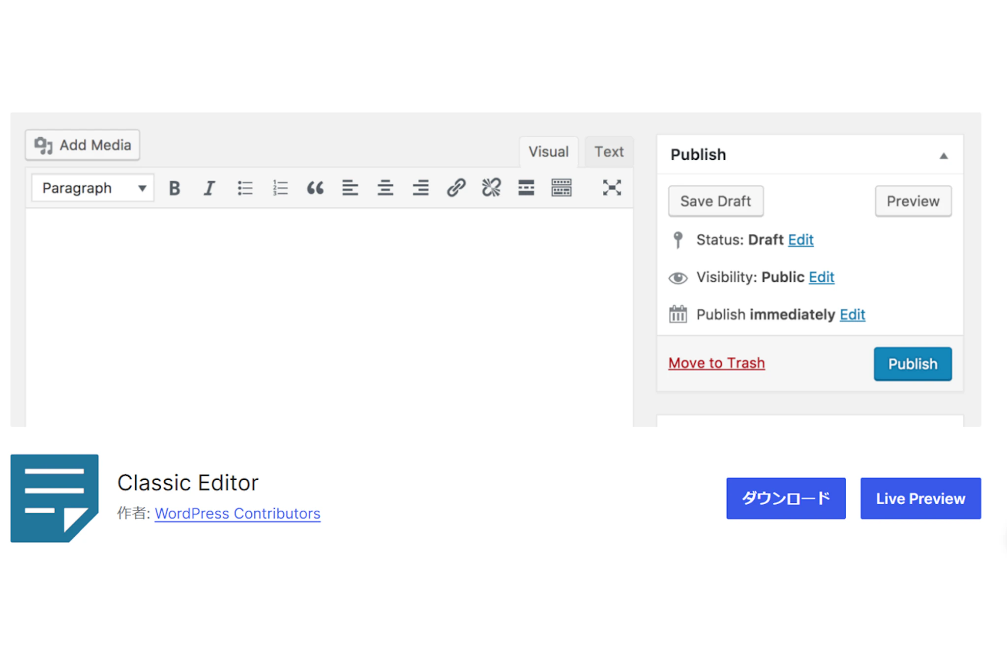WordPress 5.0以降のデフォルトエディターは「Gutenberg」ですが、従来の「Classic Editor」の方が使い慣れているという方も多いはず。Classic Editorプラグインを入れれば、以前のエディターを使い続けることができます。