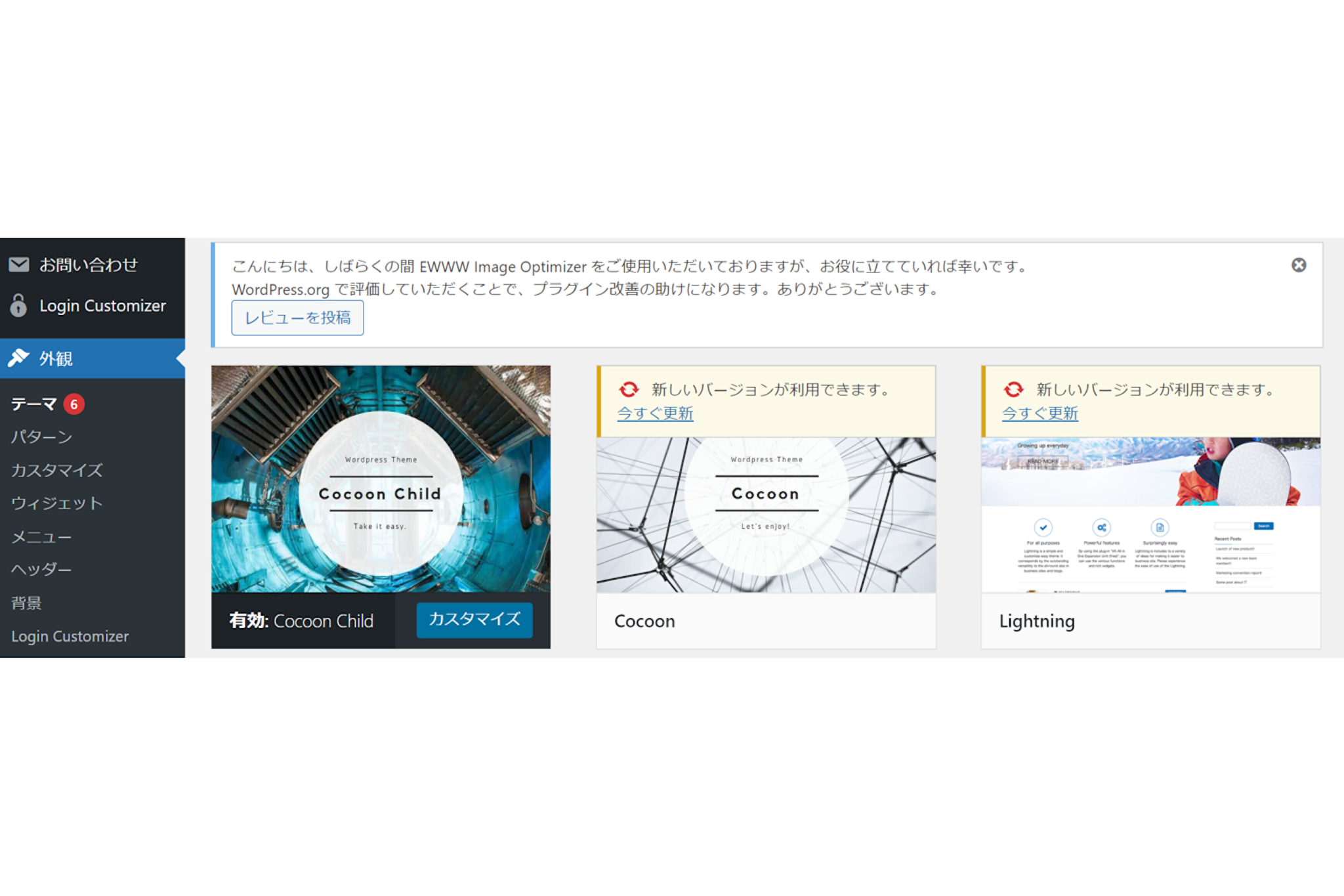 また、テーマを変更するとウィジェットのレイアウトが崩れたり、カスタマイズしていた部分のデザインが元に戻ったりすることがあります。変更後は、サイト全体の表示や機能を入念に確認し、必要に応じて再設定をおこないましょう。