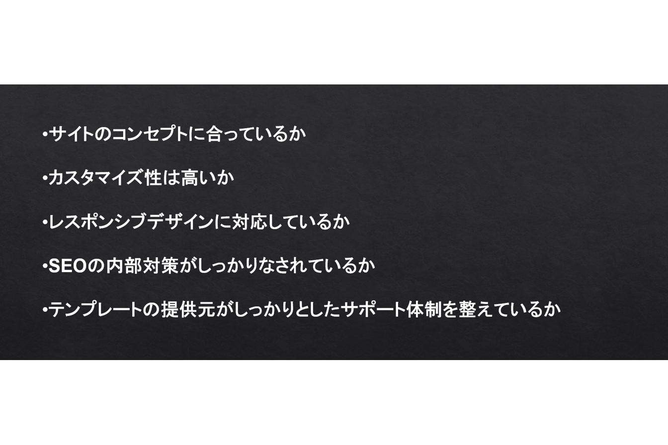 ただし、テンプレートを選ぶ際は注意が必要です。以下のようなポイントをチェックしましょう。