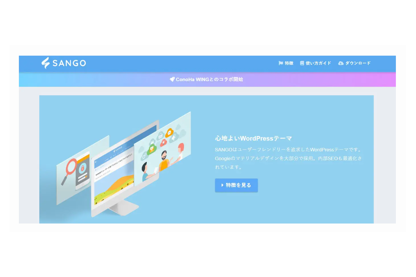 SANGO Proは、SEOに特化した国産のテンプレートです。検索エンジン対策に有効な構造化マークアップなどが最初から組み込まれています。