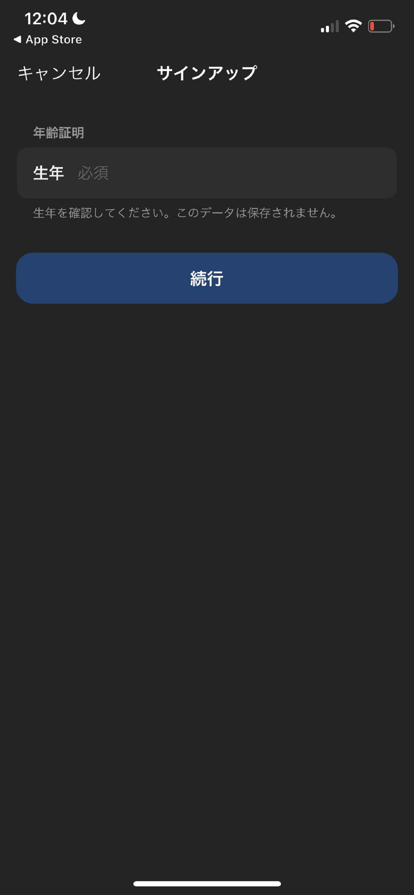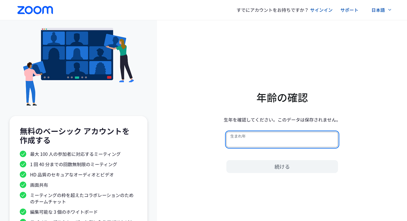 誕生日を選択して「続ける」を入力。