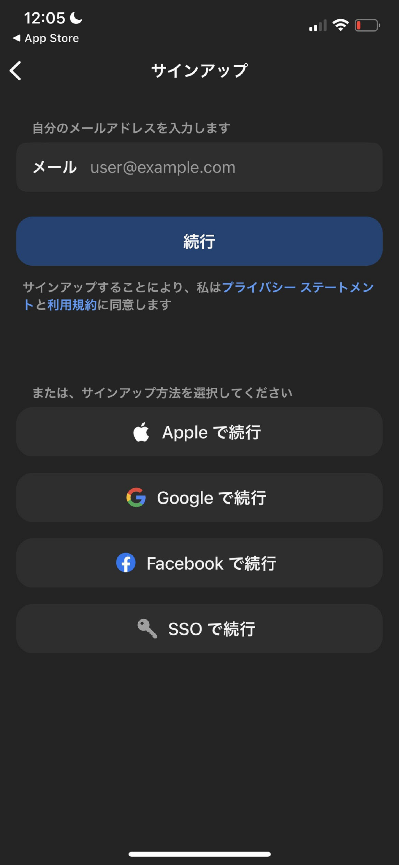 インストールできたら、Zoomアプリを起動して「サインアップ」をタップ。