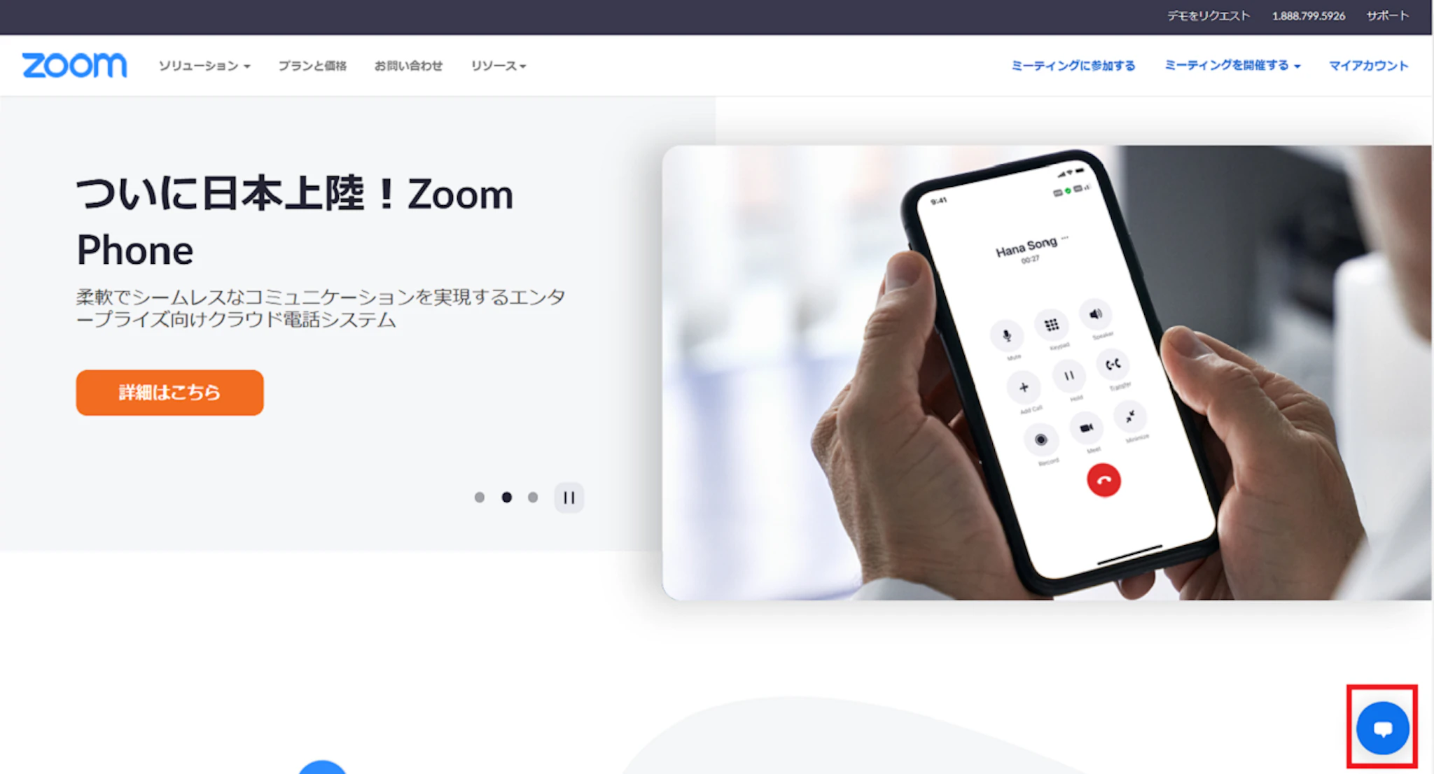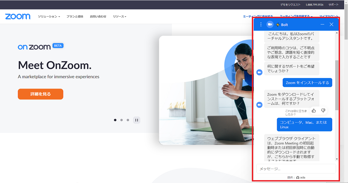Zoomのホームページの中にチャットボットのシステムがあります。