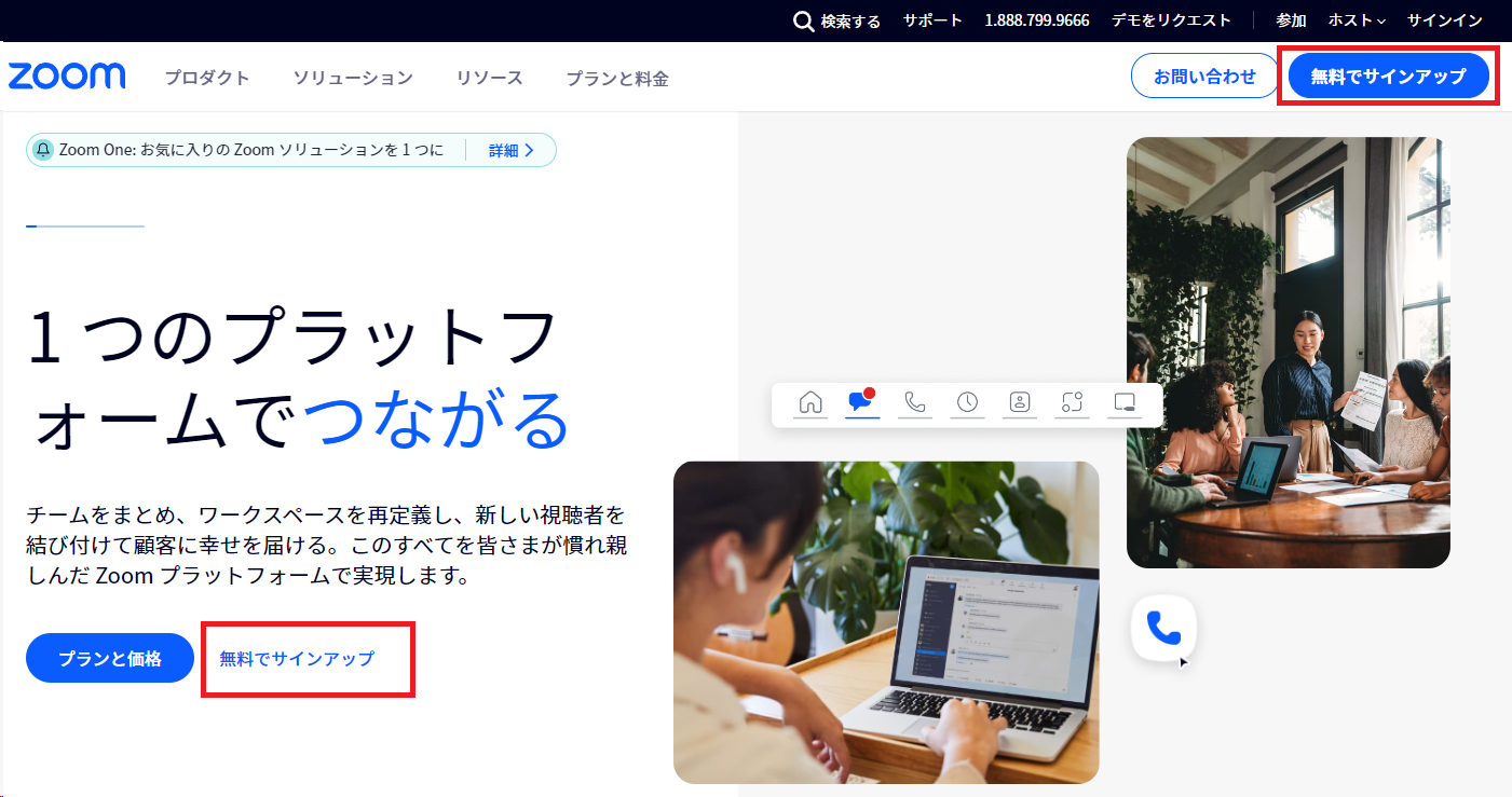 まず、パソコンでZoom会議を主催するための手順について解説します。パソコンのブラウザから、Zoomの公式Webサイトへアクセスします。