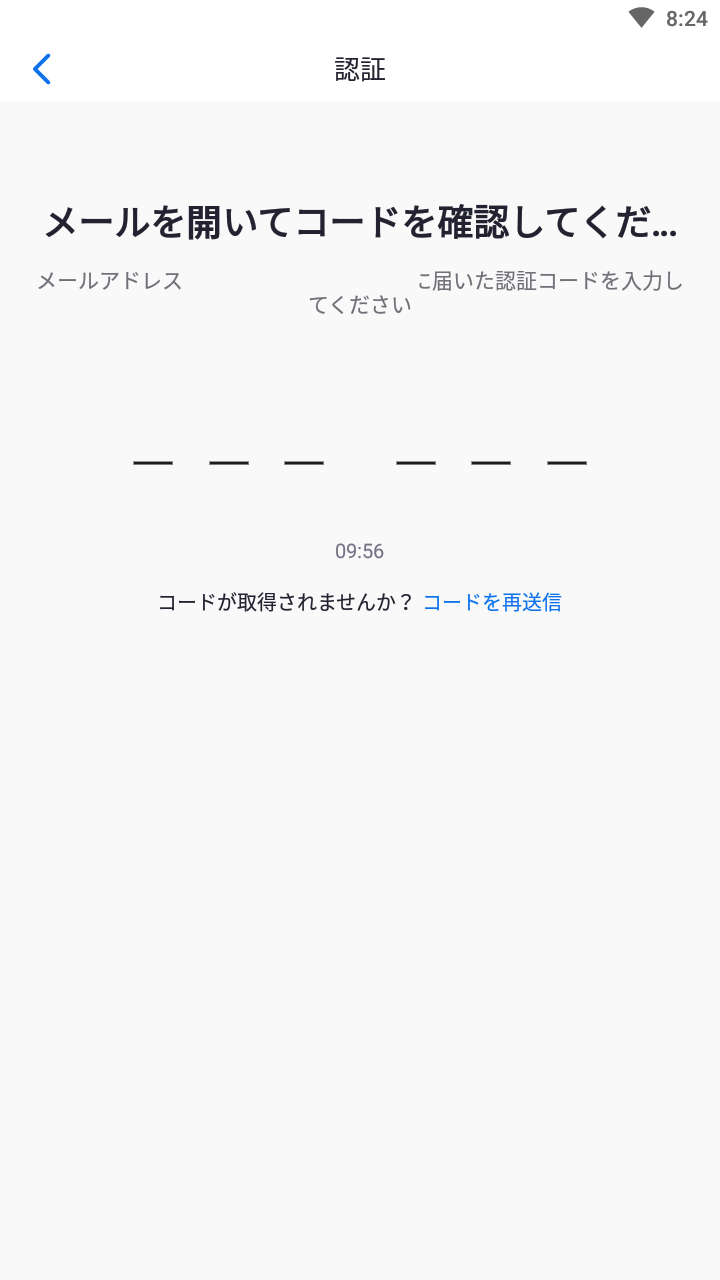 メールで届いた認証コードを入力し、「続行」をタップします。