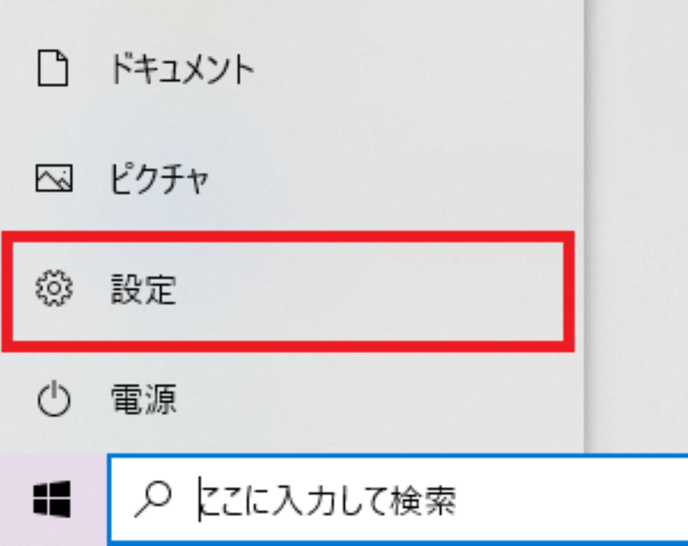 スタートメニューから設定を開いてください。