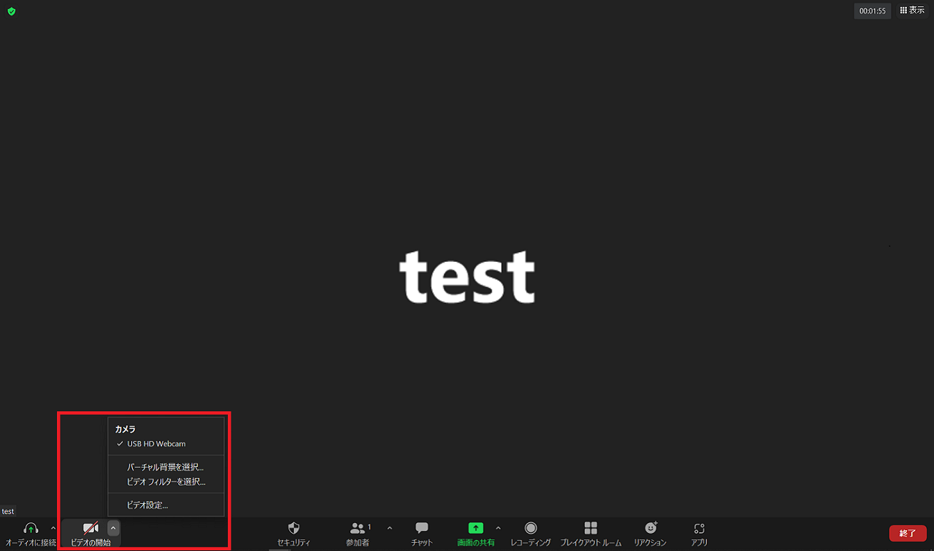 ここでは、Zoomに参加したあとで設定を変更するやりかたを紹介します。