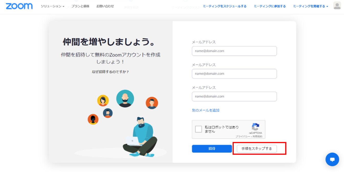アカウントの招待画面に移りますが、ここはスキップでOKです。