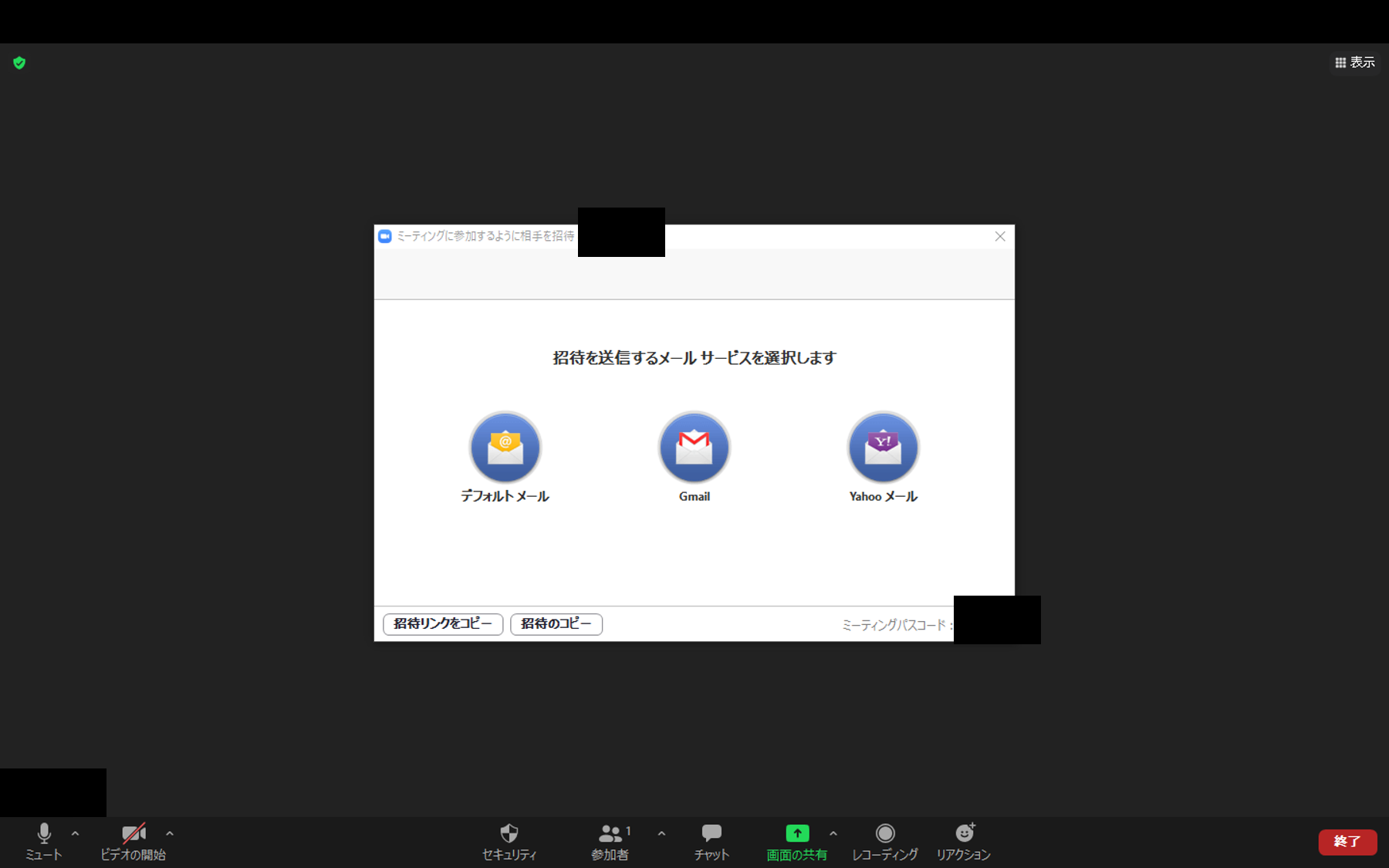 ビデオオン・オフ等選択できるので、好きなものを選択してください。