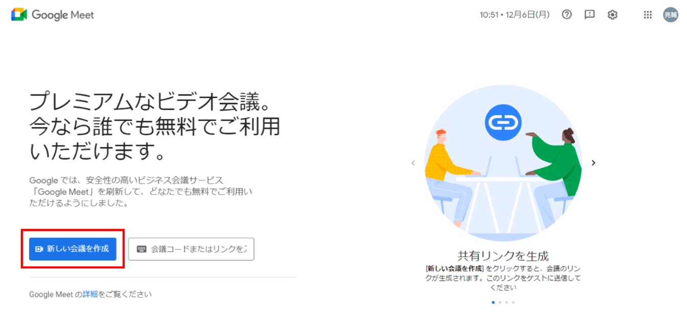 Google Meetはサイト構成もシンプルで、誰でも手軽に使用できます。