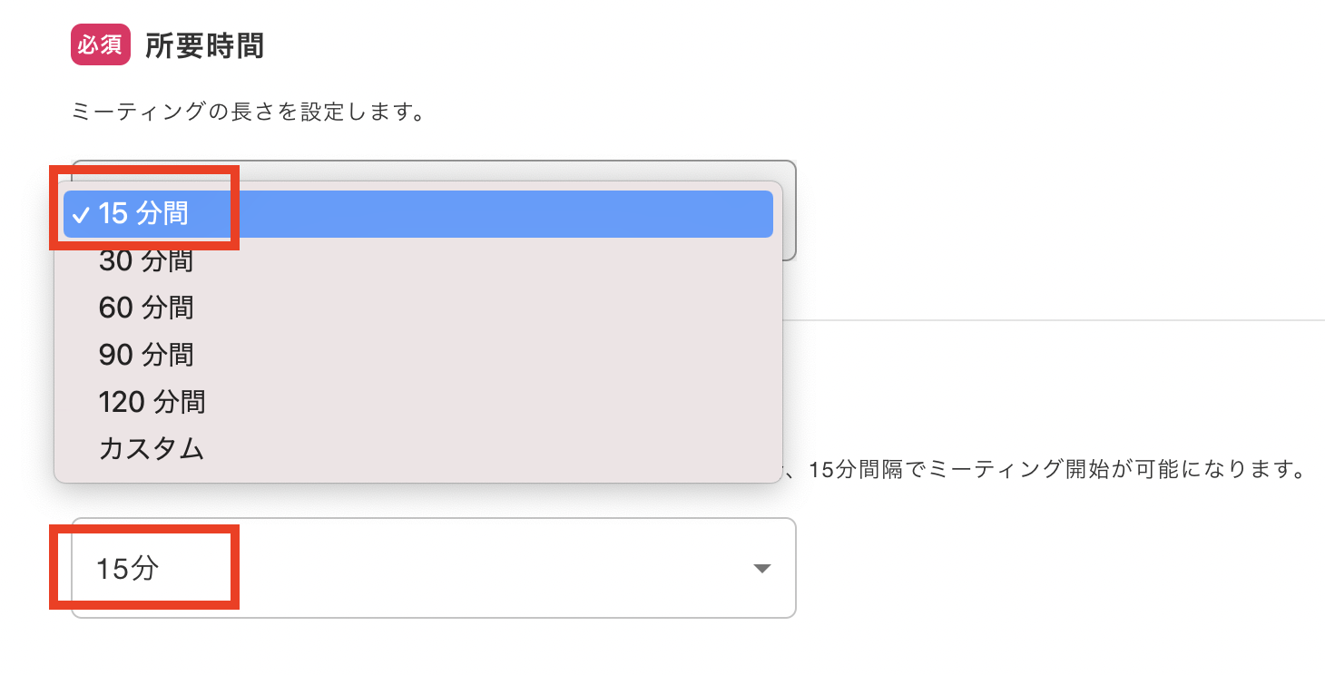 予定タイプの編集で15分単位でのミーティングの設定ができるようになりました。カジュアル面談や、1 on 1などのシチュエーションに合わせて予定をすることができます。様々な日程調整にご活用ください。