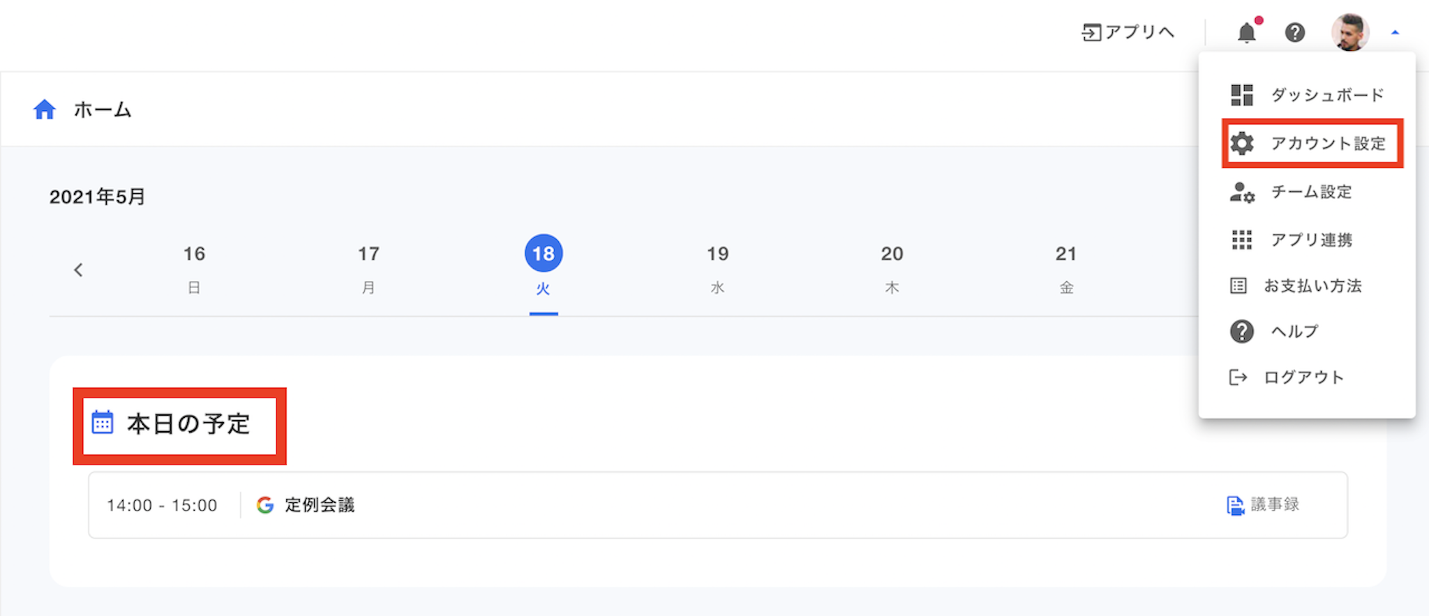 指定した時間になるとメールで本日の予定が配信されます。