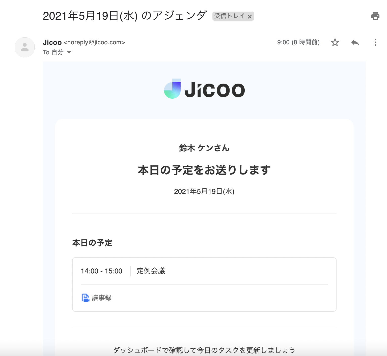 Jicooのダッシュボードで表示をしている本日の予定がメール配信可能になりました。