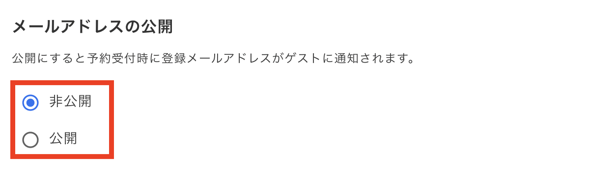 今回、ゲストとのやりとりにおいて、ホストのメールアドレスを予約受付時に公開・非公開の設定ができるようになりました。