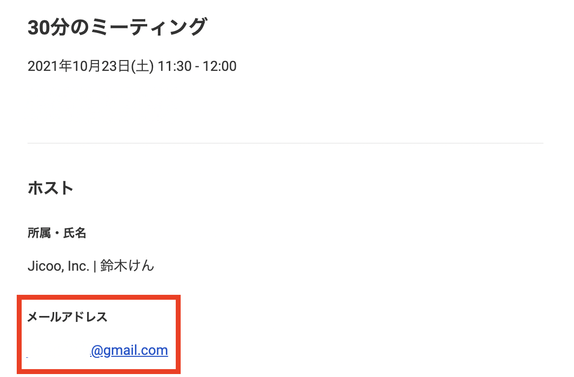 イベントやセミナーなどの受付の場合に、メールアドレスを非公開にして、Jicoo経由でのやりとりに絞ることができます。